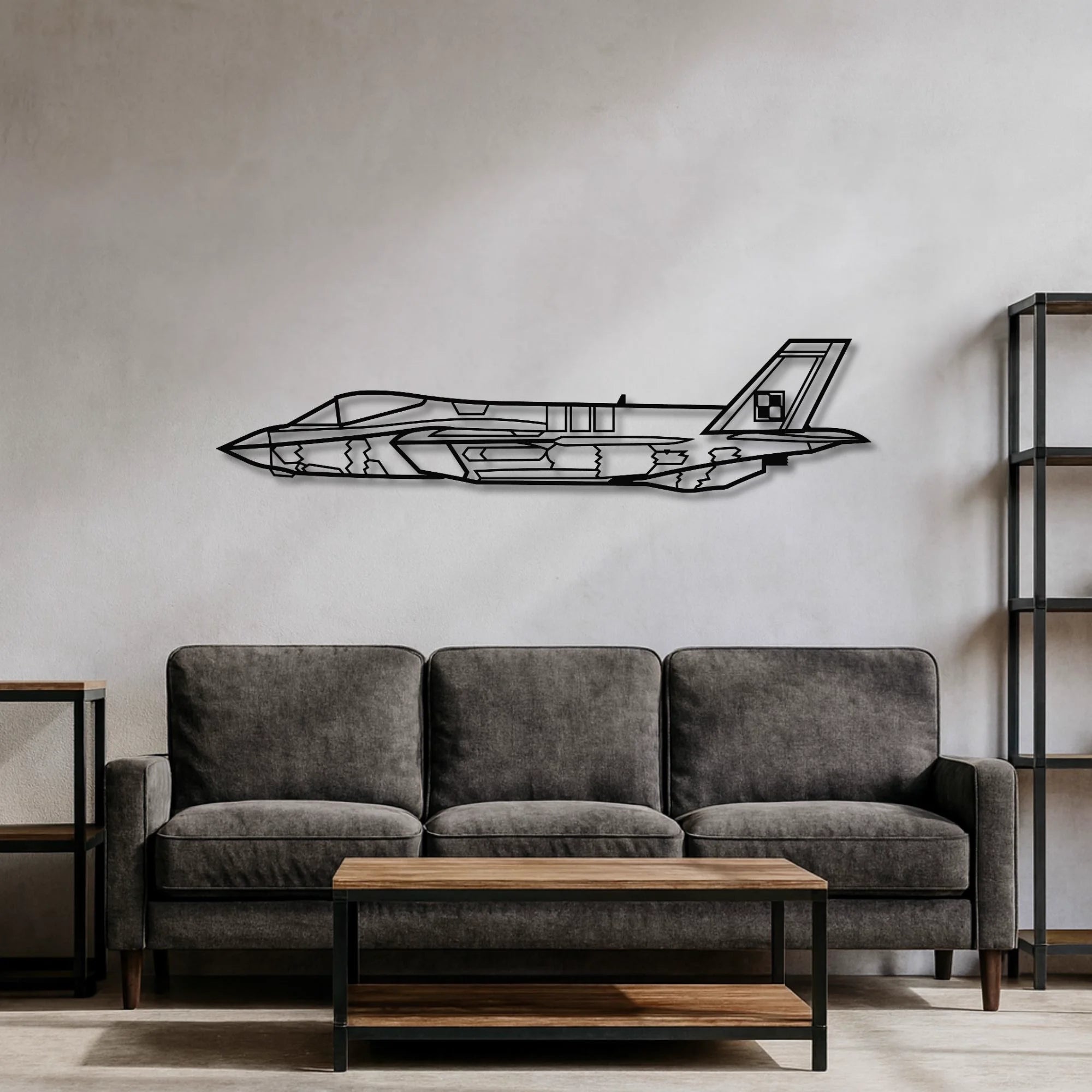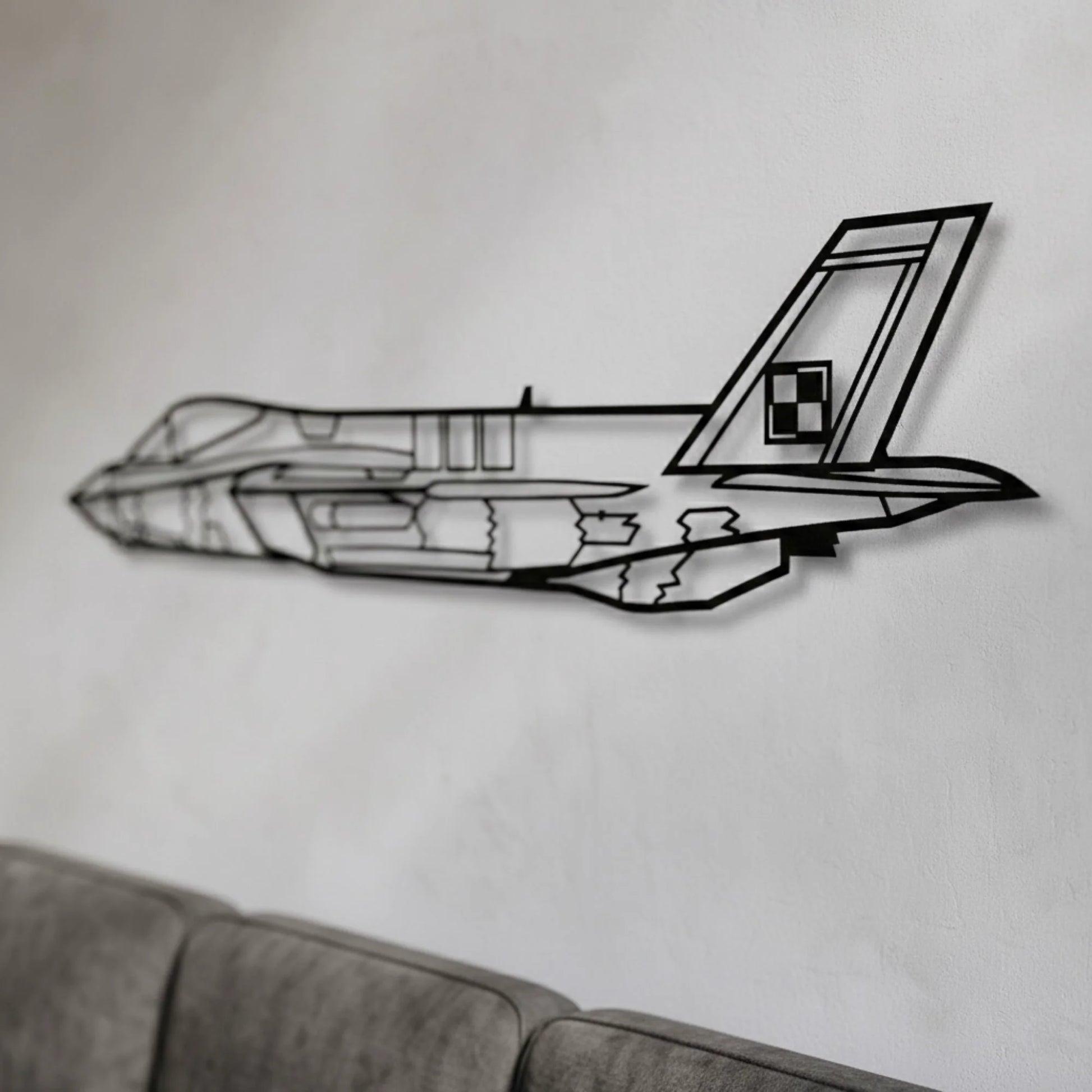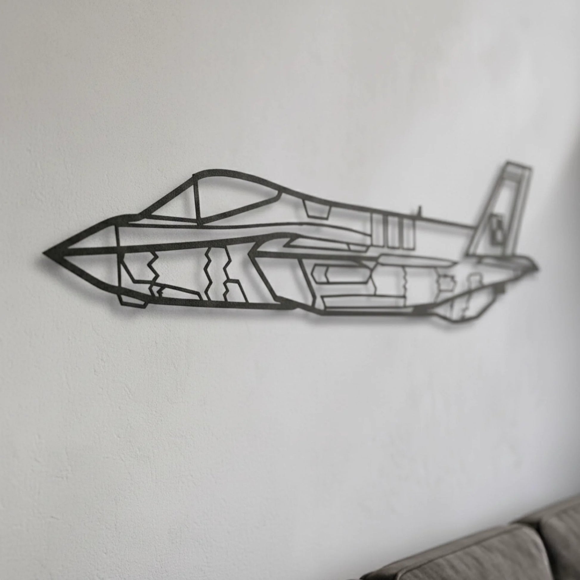 Wprowadź swoje wnętrze w erę lotnictwa piątej generacji dzięki dekoracji ściennej przedstawiającej najnowocześniejszy myśliwiec świata – F-35 Lightning II. Ta trójwymiarowa rzeźba techniczna, wykonana z wysokogatunkowej stali o grubości 3 mm, to esencja futurystycznego designu i militarnej potęgi, przeniesiona wprost na Twoją ścianę.