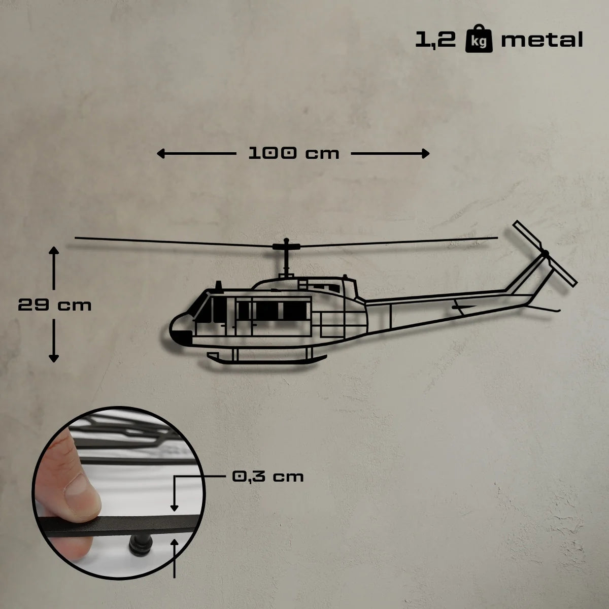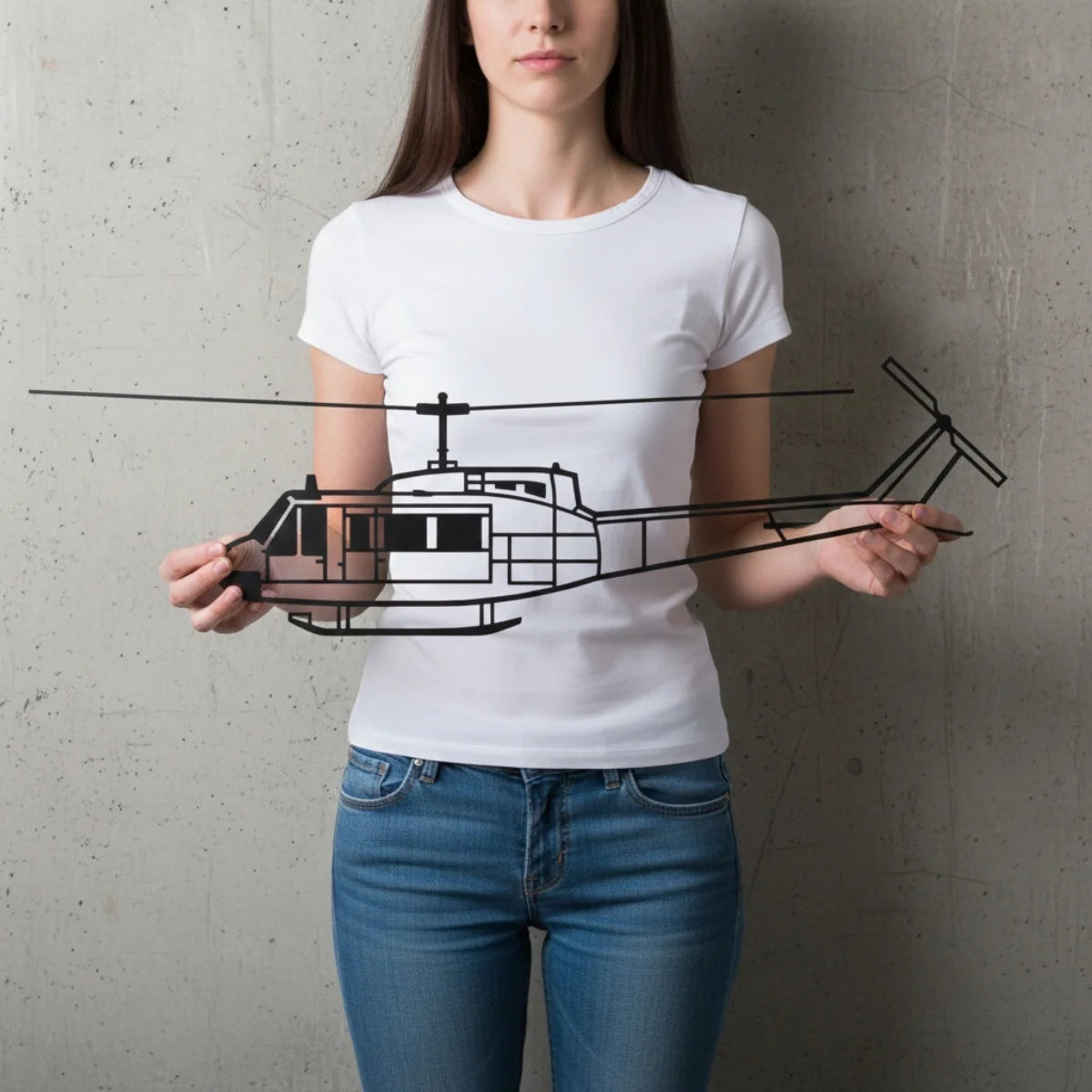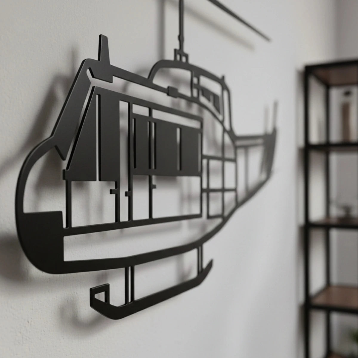 Dodaj lotniczy akcent do swojego wnętrza z metalową dekoracją przedstawiającą śmigłowiec Huey – ikonę wojny w Wietnamie i symbol amerykańskich sił powietrznych. Dla fanów historii i techniki lotniczej.