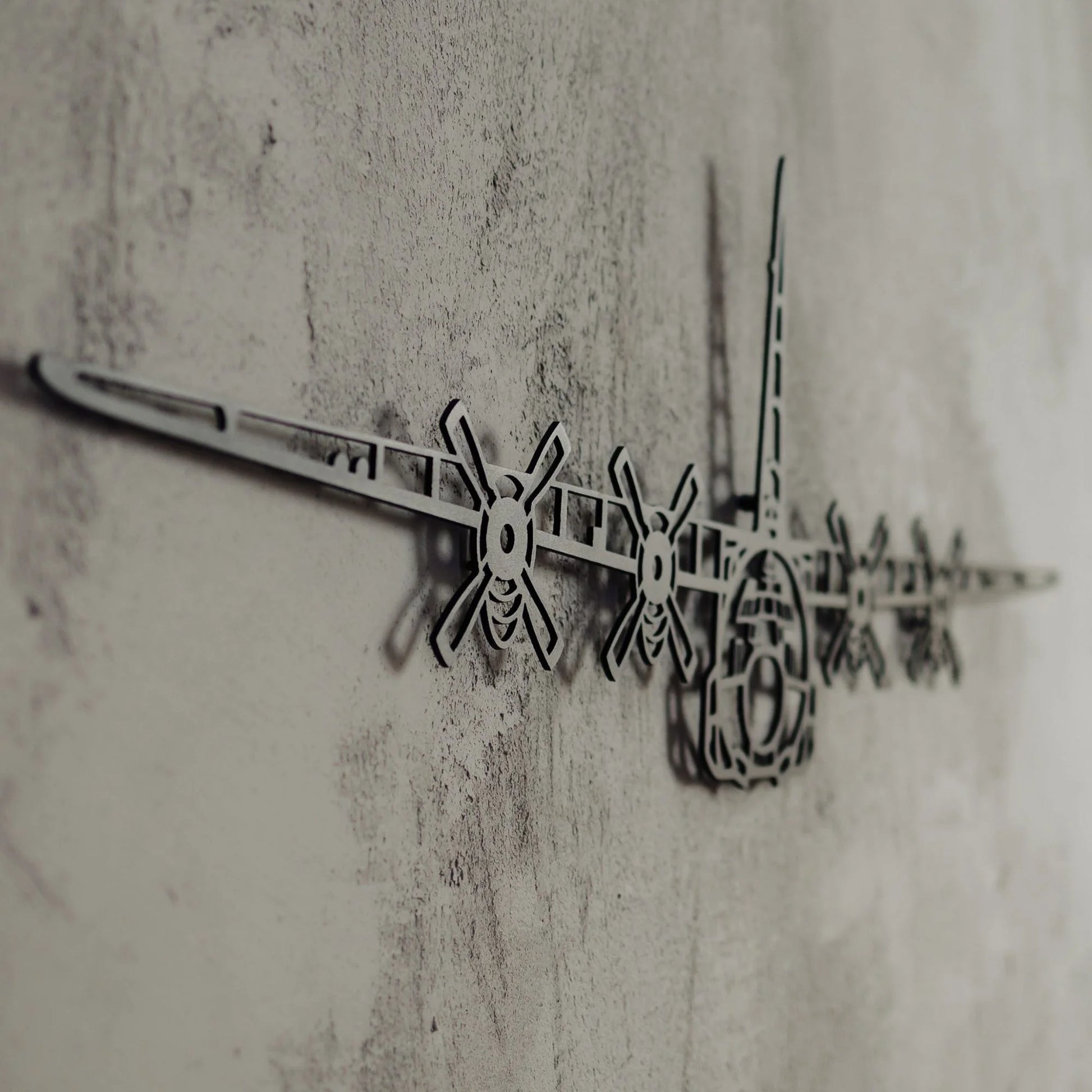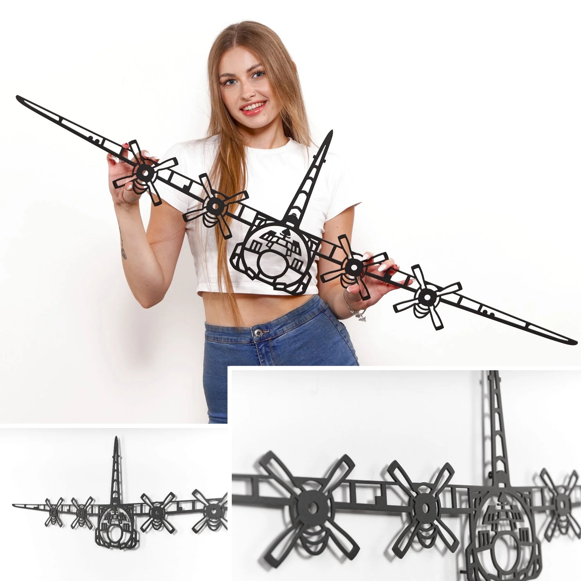 Metalowa sylwetka C-130 Hercules – Waga ciężka na Twojej ścianie Wprowadź do swojego wnętrza absolutnego giganta logistyki. C-130 Hercules w formie przestrzennej metalowej rzeźby to dekoracja, która natychmiast dominuje nad przestrzenią. Niezwykle szczegółowe odwzorowanie czterech potężnych silników turbośmigłowych i masywnego, pękatego kadłuba sprawia, że jest to centralny punkt każdego pomieszczenia. Doskonale współgra z surowym betonem, czerwoną cegłą i minimalistycznymi aranżacjami loftowymi.