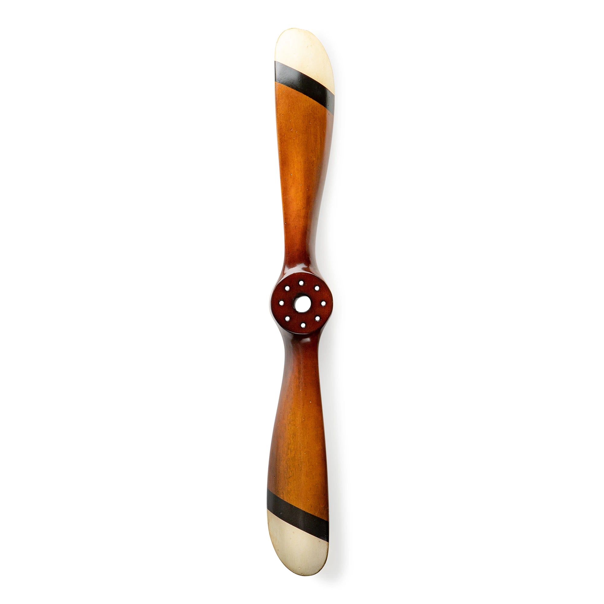 Ponadczasowa dekoracja ścienna dla miłośników awiacji i stylu retro. Precyzyjnie wykonane z wytrzymałego drewna sosnowego, to małe śmigło dekoracyjne wyróżnia się elegancką, czarno-kremową kolorystyką połączoną z ciepłym, miodowym odcieniem postarzanego drewna. Doskonały sposób, aby wprowadzić do domowego biura, salonu lub przedpokoju odrobinę historycznego prestiżu. Eleganckie wykończenie i rzemieślnicza dbałość o detale.