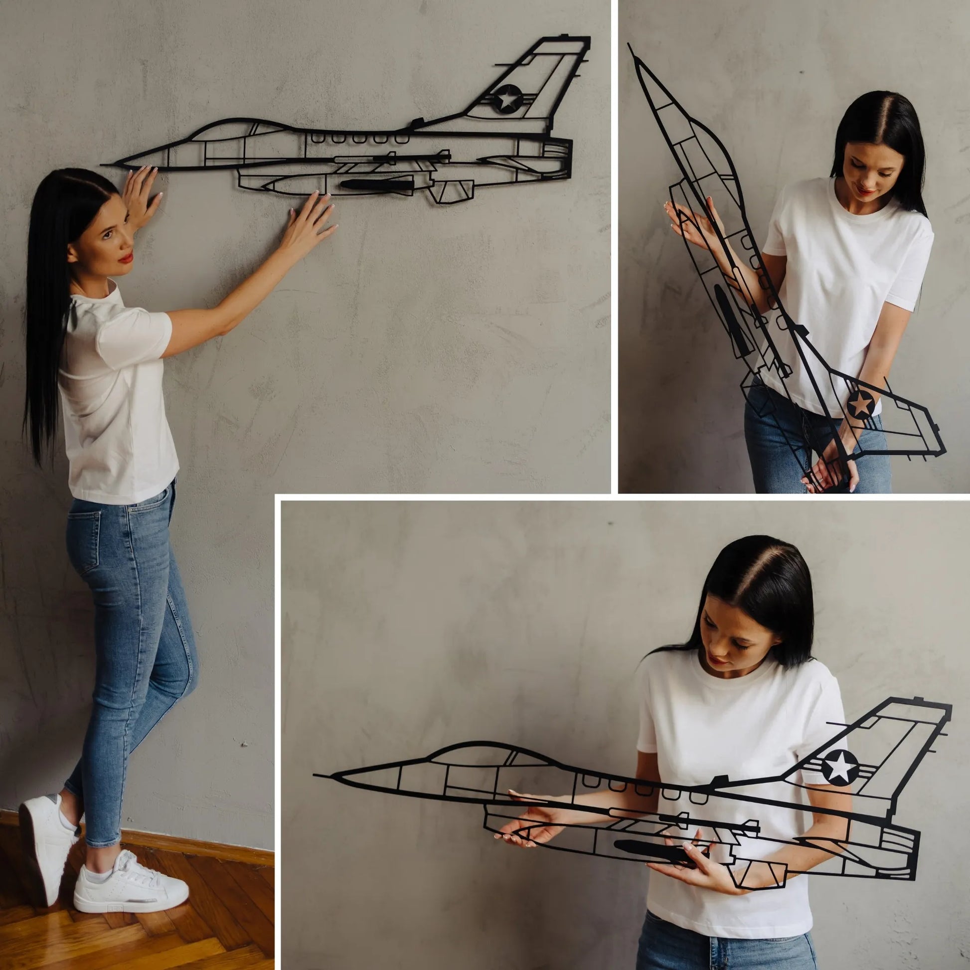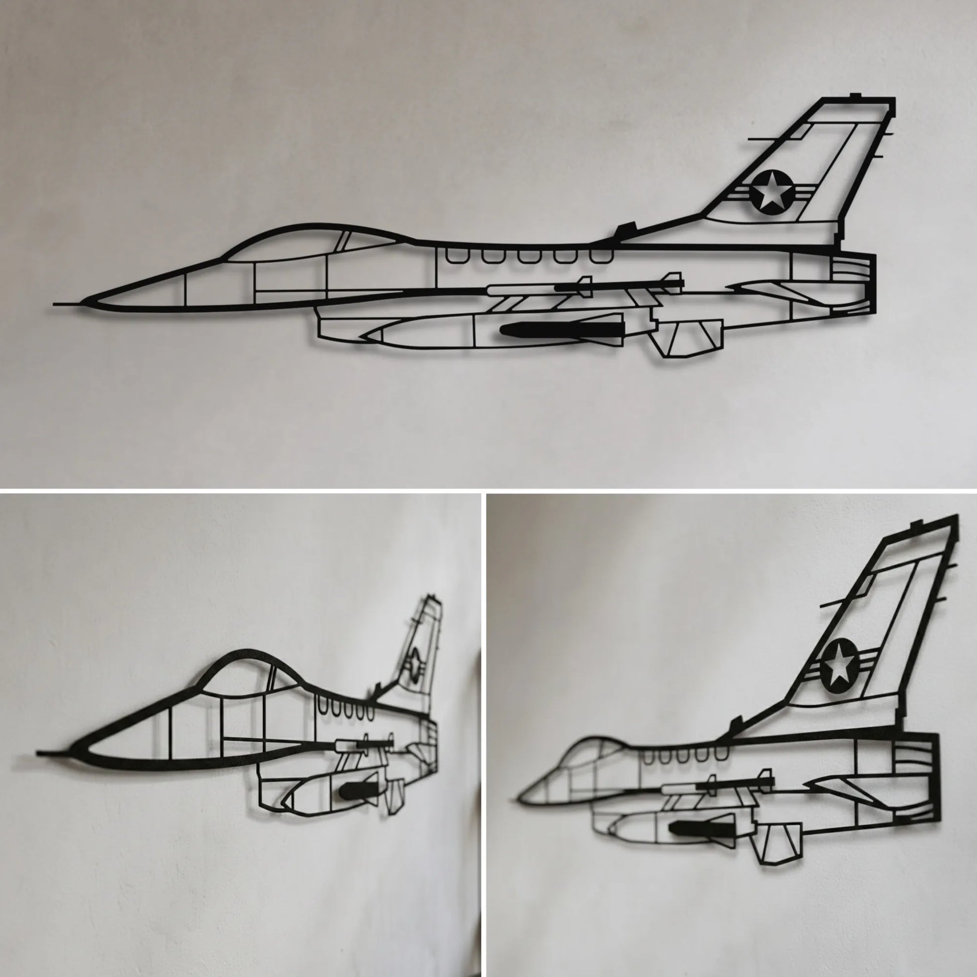 Wprowadź do swojego wnętrza dynamikę i inżynieryjną precyzję dzięki unikalnej dekoracji ściennej przedstawiającej myśliwiec F-16 Fighting Falcon. Nasza metalowa sylwetka to nie tylko ozdoba, to manifestacja pasji do lotnictwa, wykonana w duchu nowoczesnego minimalizmu.