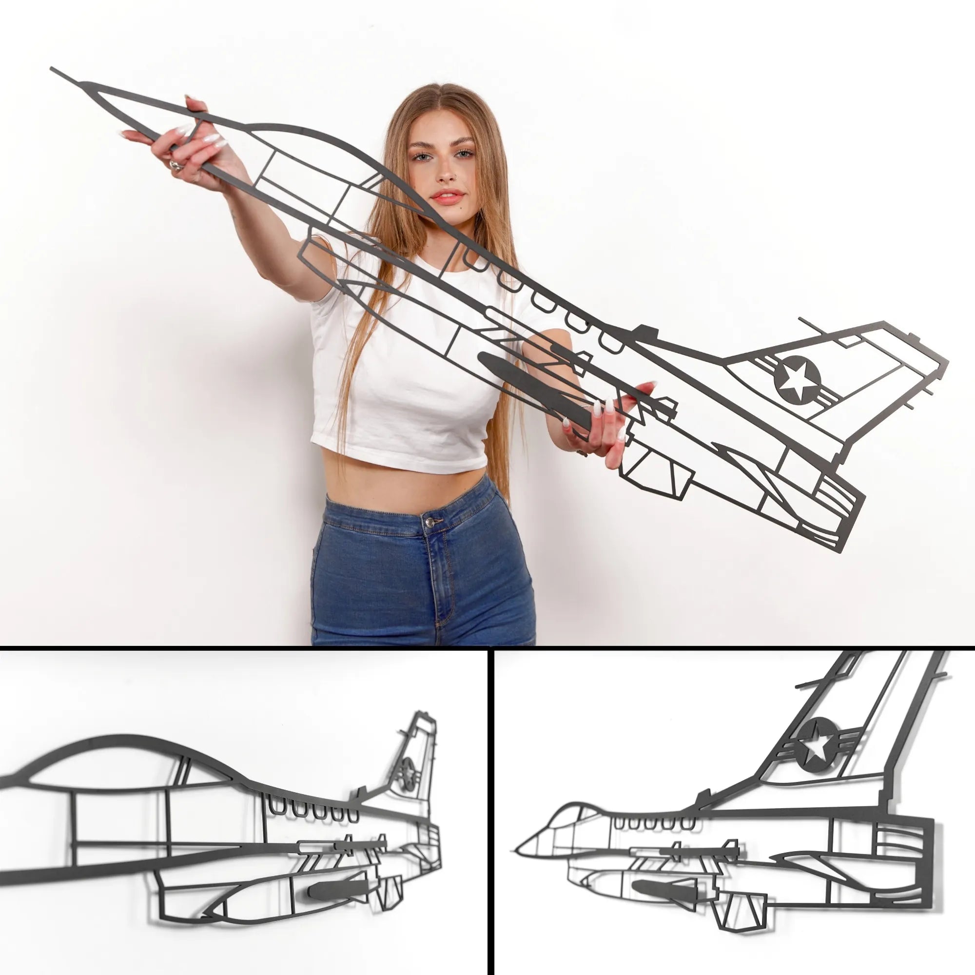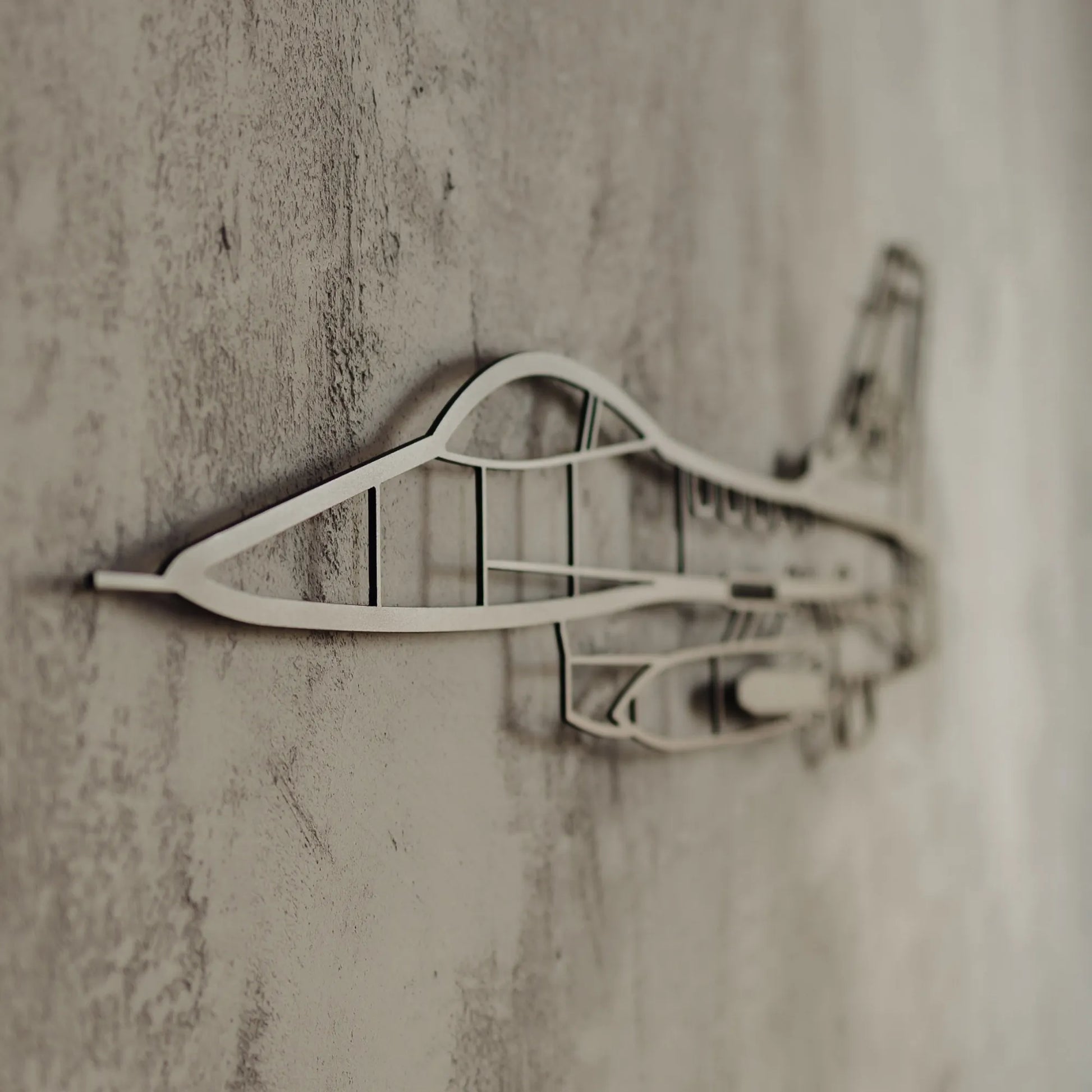 Wycięta z najwyższą dokładnością przy użyciu technologii laserowej, oddaje charakterystyczną linię jednego z najsłynniejszych myśliwców wielozadaniowych świata. Czarny, drobnoziarnisty mat malowania proszkowego nadaje jej elegancki, surowy wygląd, który idealnie wpisuje się w stylistykę loftową, industrialną oraz nowoczesne biura. Dzięki zastosowaniu specjalnych dystansów, model tworzy na ścianie efektowny cień 3D, zmieniający się wraz z kątem padania światła.
